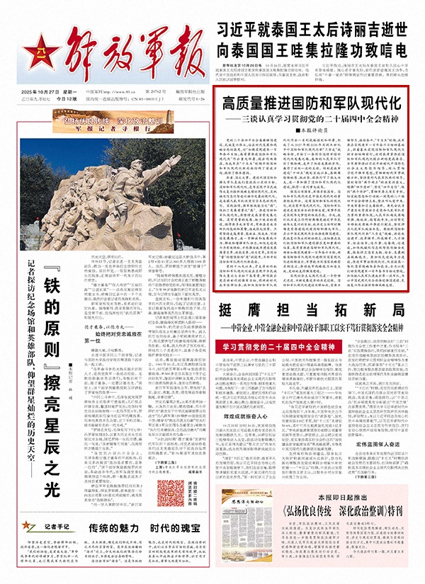 黨的二十屆四中全會著眼強國建設、民族復興偉業(yè),站在時代發(fā)展和戰(zhàn)略全局的高度,對“如期實現(xiàn)建軍一百年奮斗目標,高質(zhì)量推進國防和軍隊現(xiàn)代化”作出重大部署、提出明確要求,為我軍在“十五五”時期開創(chuàng)國防和軍隊現(xiàn)代化新局面指明了前進方向、提供了根本遵循。
