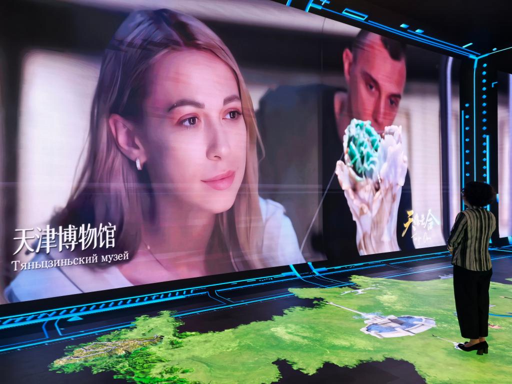 兩張巨幅畫(huà)軸,成為新聞中心的靚麗風(fēng)景。一張畫(huà)軸上,上合組織國(guó)家旖旎風(fēng)光、地標(biāo)建筑、建設(shè)成果、文化生活與特色美食等場(chǎng)景絢麗展開(kāi),另一張畫(huà)軸則以天津風(fēng)物為底,勾勒出現(xiàn)代化大都市的形象。
