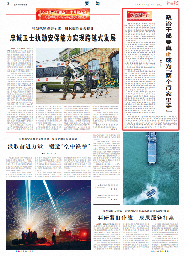 強(qiáng)化“兩個(gè)行家里手”意識(shí),提高領(lǐng)兵打仗、決戰(zhàn)決勝的本領(lǐng)。習(xí)主席指出,政治干部要努力學(xué)軍事、學(xué)指揮、學(xué)科技,全面提高綜合素質(zhì)和實(shí)際能力,政治工作要成為行家里手,軍事工作也要成為行家里手,這樣才能把政治工作做好。政治干部不能做訓(xùn)練的“旁觀(guān)者”、打仗的“門(mén)外漢”,而應(yīng)下功夫把練兵打仗、指揮打仗、帶兵打仗的本領(lǐng)搞過(guò)硬,具備“坐下來(lái)能寫(xiě)、站起來(lái)能講、上戰(zhàn)場(chǎng)能打”的素質(zhì),真正成為政治工作和軍事工作“兩個(gè)行家里手”。