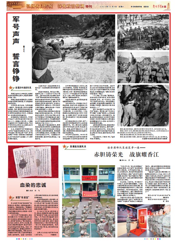 源遠(yuǎn)者方能流長。我們這支軍隊(duì),是世界上唯一一支被稱為“子弟兵”的軍隊(duì)。這種身份認(rèn)同,標(biāo)注著我們獨(dú)特“號譜”擁有的精神刻度和政治底色。那些高亢的音符節(jié)律中,既吹響了精神跋涉和信念熔鑄的集結(jié)號,也吹響了聽黨指揮、戰(zhàn)勝敵人的沖鋒號。穿透戰(zhàn)火硝煙的軍號聲,凝聚成為一代代革命軍人的肝膽血脈,清晰地表達(dá)著一個堪稱樞軸之范的詞匯——忠誠。