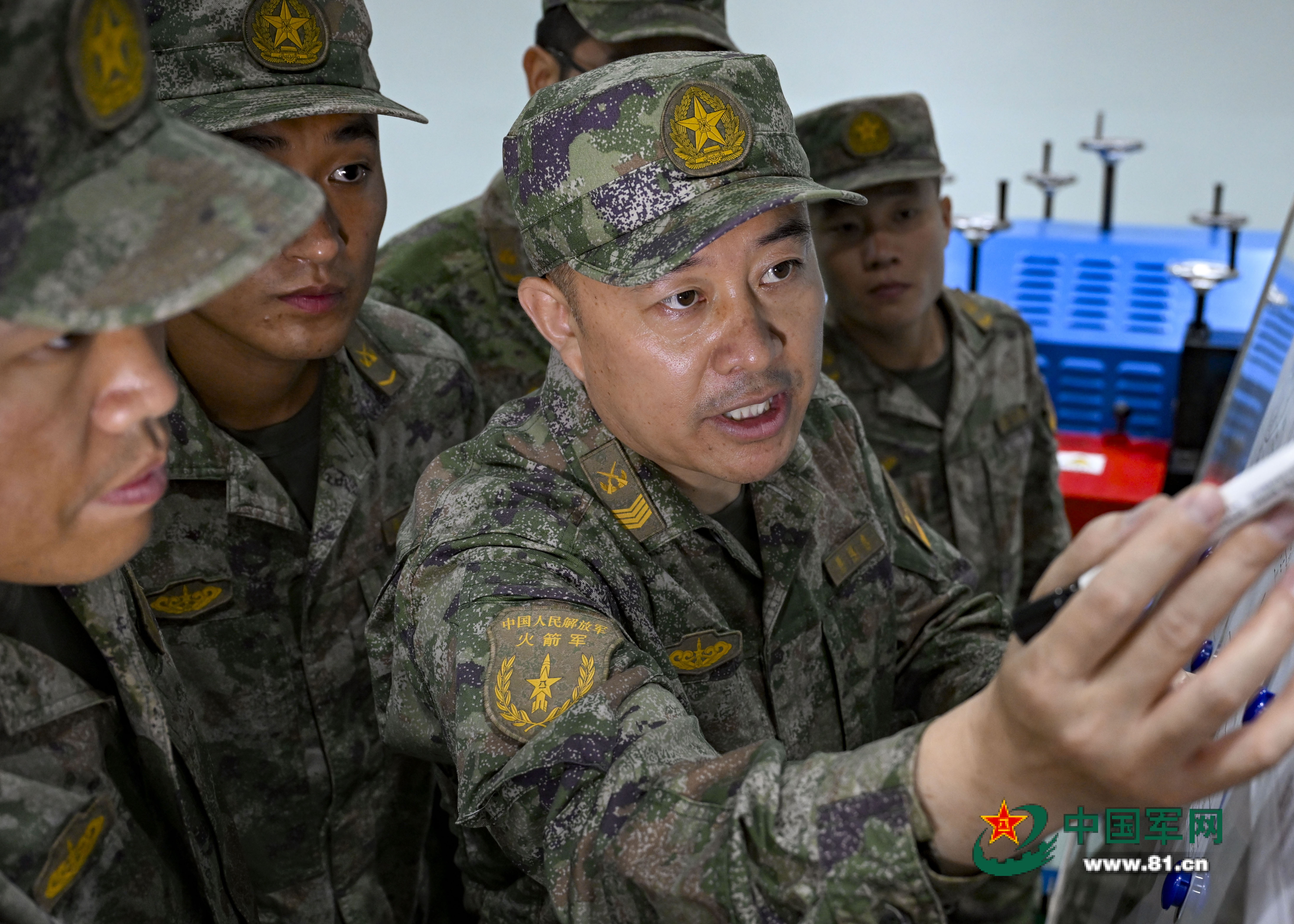 火箭軍某旅一級(jí)軍士長(zhǎng)崔道虎(中)在與戰(zhàn)友探討設(shè)備改進(jìn)方案。劉明松攝